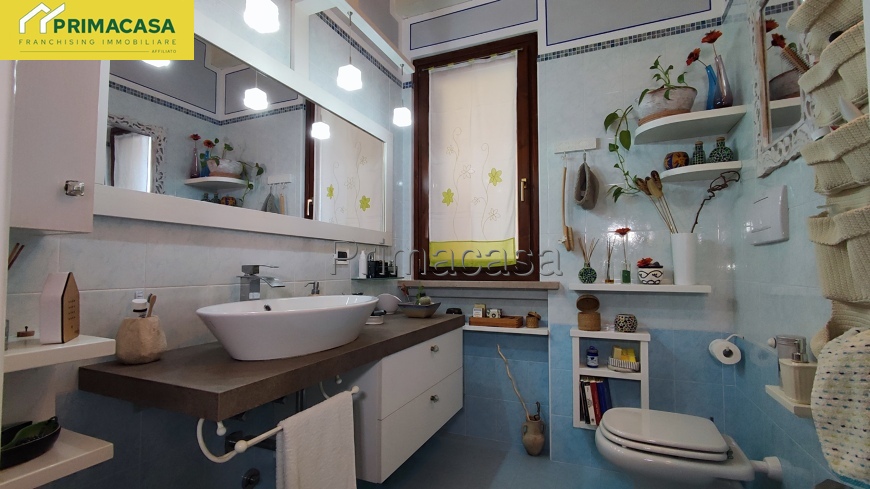 Un valore aggiunto è il comodo ripostiglio con attacco per la lavatrice e l’accesso alla soffitta, uno spazio prezioso che può diventare una terza camera, una stanza giochi o uno studio, seguendo le esigenze della famiglia nel tempo.