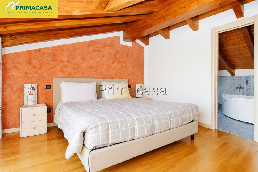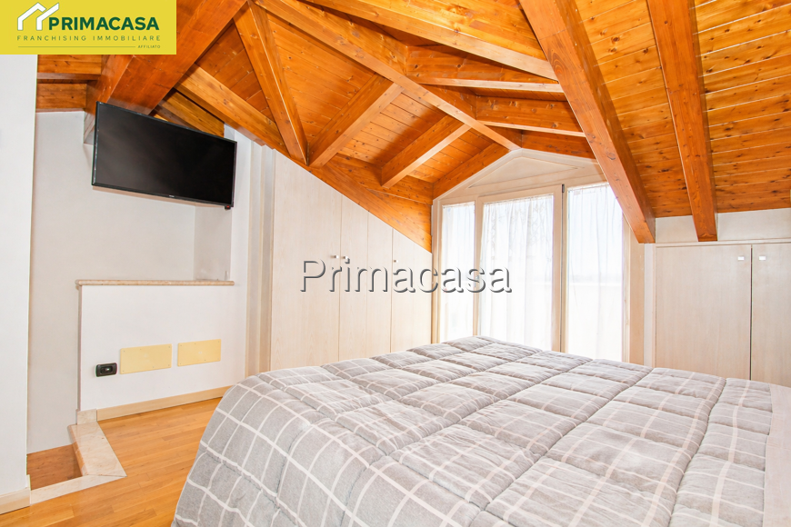 Al piano primo si trovano le due luminose camere da letto, entrambe con balcone terrazzato, ed un bagno finestrato. Nella mansarda abitabile è presente una spaziosa camera matrimoniale con bagno padronale, armadi a muro già realizzati ed una terrazza solarium riservata con vista panoramica.
