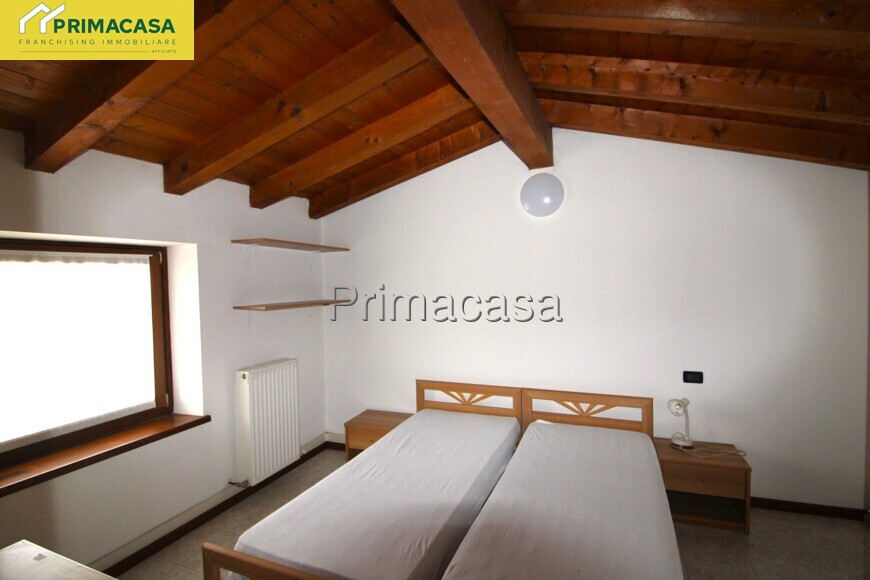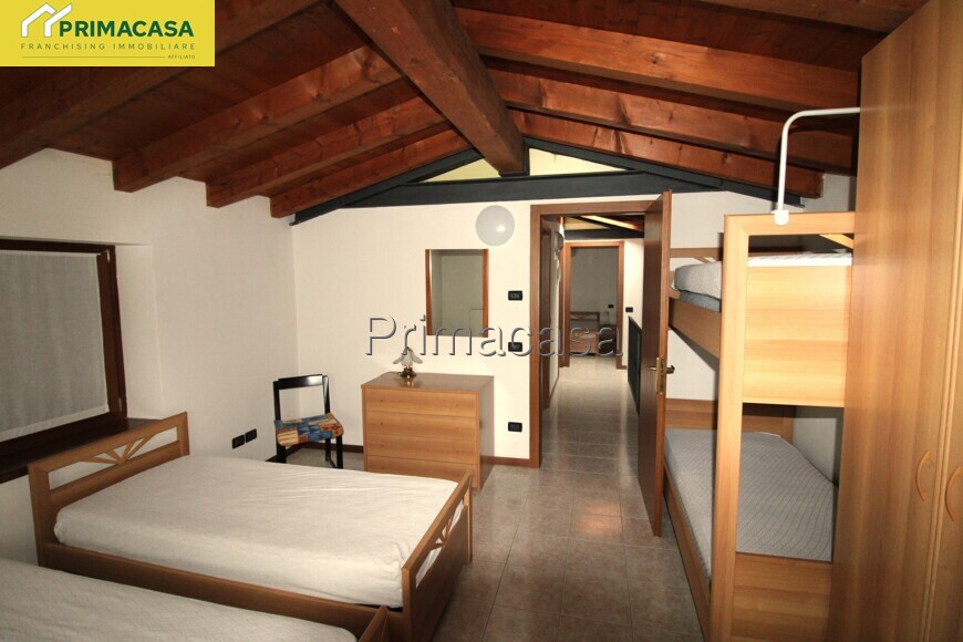 Salendo ancora, si accede al piano mansardato, uno degli ambienti più suggestivi della casa. Il tetto in legno con travi a vista crea un’atmosfera calda e accogliente, valorizzando le due ulteriori camere da letto, entrambe finestrate, una matrimoniale e una doppia. Anche questo livello è servito da un bagno e da un comodo ripostiglio, rendendo la distribuzione degli spazi completa e funzionale.