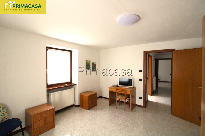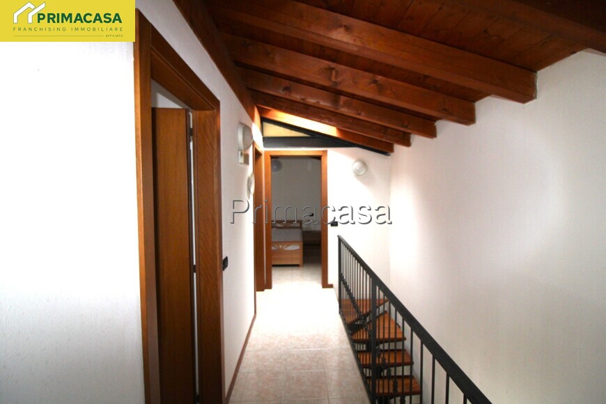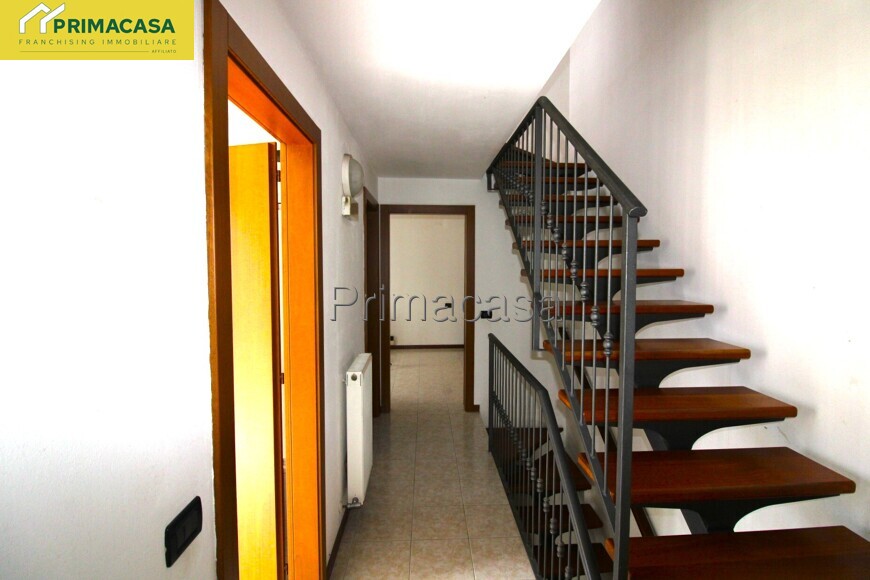 Una scala interna conduce al piano primo, dedicato alla zona notte. Qui si trovano due camere da letto, una doppia e una matrimoniale dotata di balcone, oltre a un bagno finestrato e a un ampio ripostiglio, pensato per organizzare al meglio la vita quotidiana.