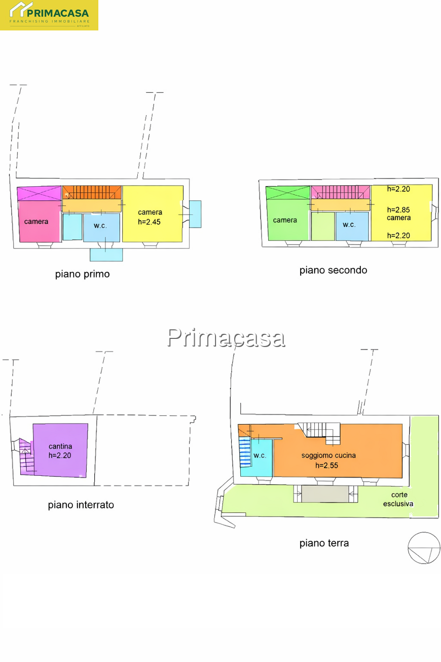 L’abitazione è rifinita con pavimentazioni in ceramica in tutti gli ambienti, bagni presenti su ogni piano, serramenti in legno con doppio vetro e imposte in legno. La porta d’ingresso è rinforzata, gli impianti sono a norma e il riscaldamento è autonomo con caldaia a gas metano. La casa gode di una tripla esposizione nord, est e sud, che garantisce luce naturale durante tutto l’arco della giornata.